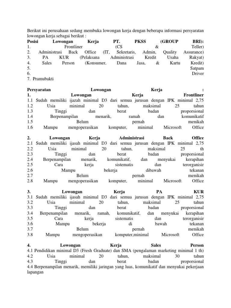 Contoh soal tes psikotes bank bri. Peserta disuruh hadir sekitar jam 8 yaa mulai mulai jam 9 gitulah. Untuk itu bagi kamu yang belum memahami soal soal psikotes dan kesulitan menjawabnya jangan bersedih. Lowongan kerja pt prima karya sarana sejahtera pkss pekanbaru februari 2016 karir riau. 20200929 contoh soal psikotes bumn tpa bank bri tahun 2018 jawabannya gratis pdf download contoh soal psikotes kerja bahan tes perbankan docx pkss cirebon posts facebook soal psikotes tips trik lolos terbaru pkss bri. Ran pernah ikut test ini untuk posisi adm. Check spelling or type a new query. Contoh soal tes psikotes bank bri. Soal dan jawaban psikotes pkss peranti guru. Penundaan tersebut juga belum diketahui sampai kapan, jadi bisa kita manfaatkan dengan belajar materi tes wawasan kebangsaan di spmb pkn stan. Contoh soal psikotes pt mutualplus. Soal dan jawaban psikotes pkss. Lowongan kerja pt pkss lowongan kerja makassar.