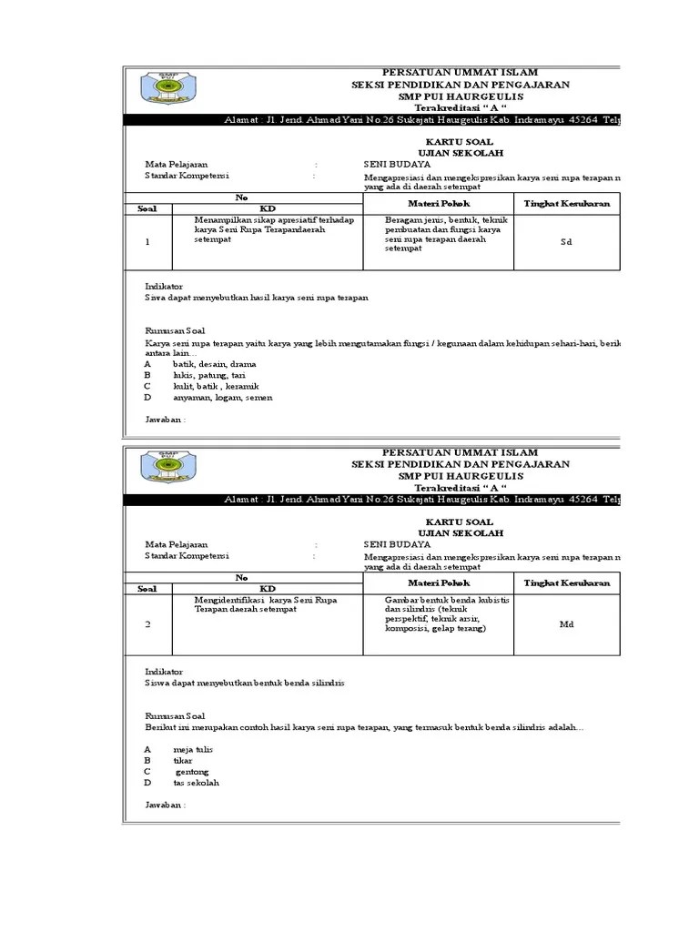 contoh file soal uts lengkap kelas 1 6 sdmi semua mata pelajaran 20162017 berikut ini adalah kumpulan dari berbagi sumber tentang contoh soal hots essay seni budaya smp yang bisa gunakan untuk bank soaldownloadsd dan diunduh secara gratis dengan menekan tombol download biru dibawah ini.