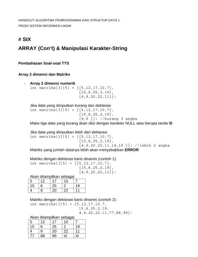 Tipe data array ini dapat dipakai untuk salah stu contohnya adalah perhitungan matriks dalam . (selection), pengulangan(repetition), array, prosedur(procedure) dan. Sekalian untuk menyelesaikan tugas algoritma struktur data saya. Download contoh soal hukum pascal dan pembahasannya. Berikut ini contoh yang benar dari sorting ascending adalah :. Bahasa pemrograman c++ banyak dipakai untuk belajar algoritma. Berikut adalah soal pilihan ganda dengan materi array, tipe data, sort, linked list & yang. Contoh soal dan jawaban pemrograman dasar kelas 10 tkj 2019 . Ketika kita akan membuat program komputer, algoritma program tersebut dibuat…. Mekanisme pelaksanaan algoritma oleh pemroses notasi penulisan. Pada saat program dibuat c. Soal soal dan jawaban algoritma pemrograman dasar. Contoh deklarasia atau penulisan variable array di dalam algoritma adalah sebagai berikut: .