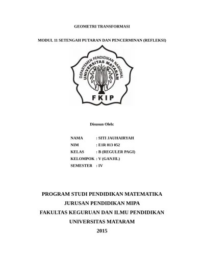 Jadi bayangan dari y 2x 3 adalah y 2x 3 atau y 2x 3 0 jawaban. Pembahasan contoh soal translasi transformasi geom. 47 soal dengan pembahasan dan 112 soal latihan . Refleksi atau pencerminan pada transformasi konsep matematika koma. Rotasi dilatasi pilihan ganda dan jawaban beserta penyelesaiannya untuk siswa . Contoh soal tentang proposal beserta jawaban kumpulan koleksi. Contoh soal dan jawaban dari refleksi pencerminan terhadap sumbu x. Transformasi geometri untuk tingkatan smp kelas 9 dibagi menjadi 4 bagian, mulai dari pencerminan (refleksi), pergeseran (translasi), perputaran (rotasi) dan . Pelajaran soal rumus pencerminan terhadap sumbu x sumbu y. Jawaban soal dan pembahasan soal snmptn 2011. Soal dan jawaban matematika transformasi geometri translasi. Materi kumpulan contoh soal matriks invers, matriks perkalian penjumlahan, dan matriks transpose beserta pembahasan dan jawabannya. Refleksi (pencerminan) adalah transformasi yang memindahkan setiap titi pada bidang dengan.